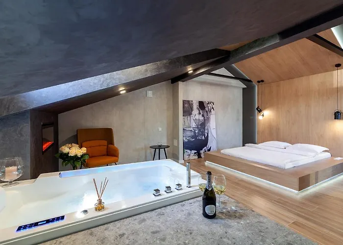 Quest'appartamento dispone di un soggiorno e di comfort come un impianto di climatizzazione e una lavatrice. Un vantaggio per gli ospiti dell'appartamento Royal Vip Jacuzzi Apart è la presenza di asciugacapelli, prodotti da bagno offerti e teli da bagno nel bagno. Sono inoltre disponibili una vasca spa, un bagno con WC separato e una doccia.